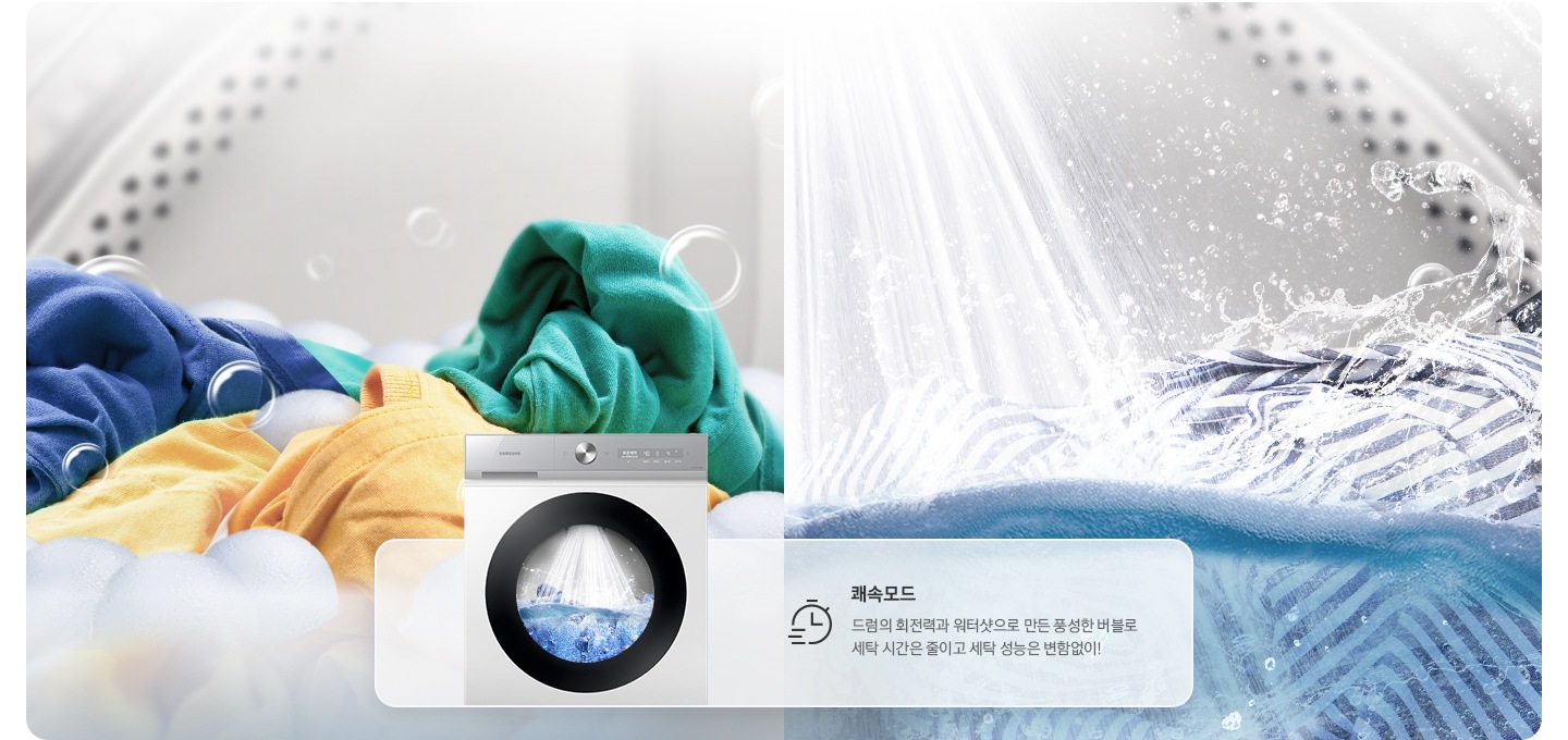 표준 세탁 대비 세탁 행정 시간 10% 단축, 세탁 성능 동등 수준.