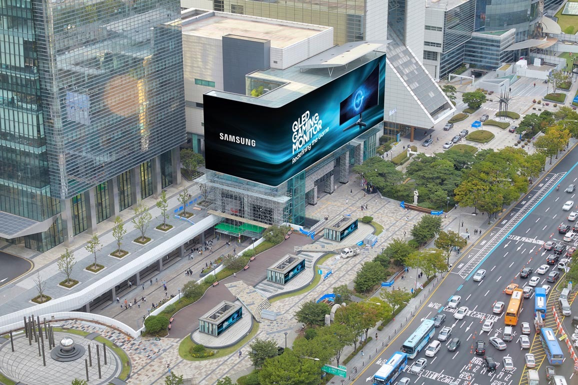 The setup is at one of the busiest streets in the country, wraps around the top of COEX complex and is four times the size of a basketball court and is 10 storeys high.