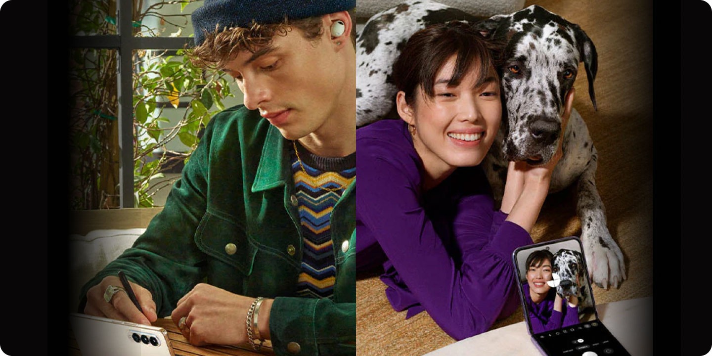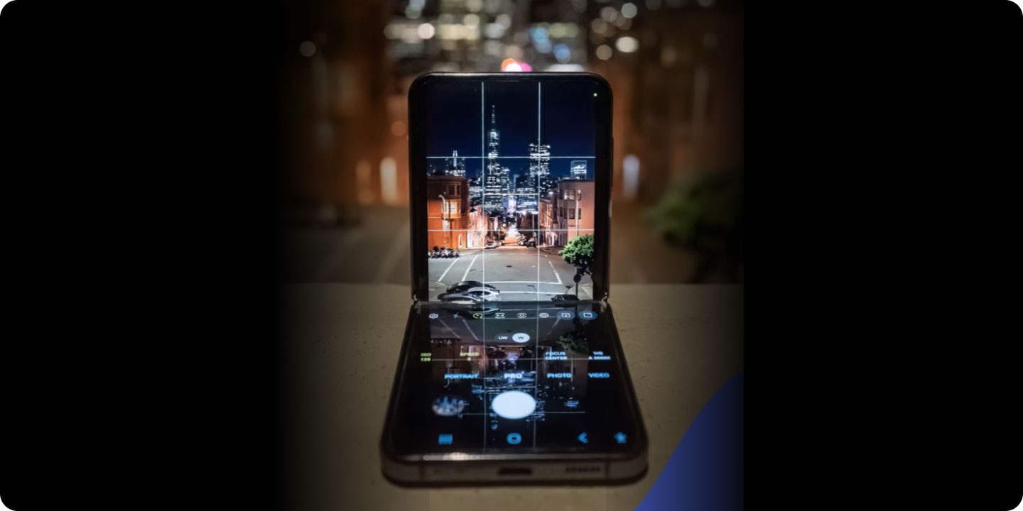 For added stability, look for phones with Dual OIS, such as the Galaxy S23 range and the Galaxy Z Flip5 - which also come with Flex Mode due to foldable screens, helping you to take stable photos hands-free. Dual OIS is when the primary and wide-angle cameras have optical image stabilisation so you don’t always have to rely on your primary lens for stable video.