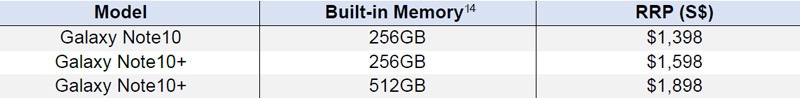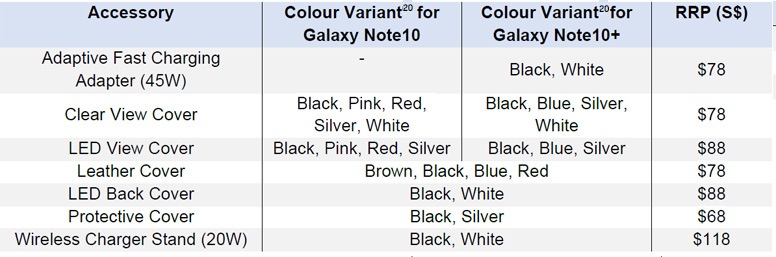 The Galaxy Note10 and Note10+ will be available in Singapore from 24 August 2019, at local telecommunication operators (M1, Singtel and StarHub), major consumer electronics & IT stores, authorised mobile retailers, Samsung Experience Stores and Lazada Singapore. The respective recommended retail prices for the devices are as follows: