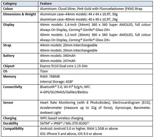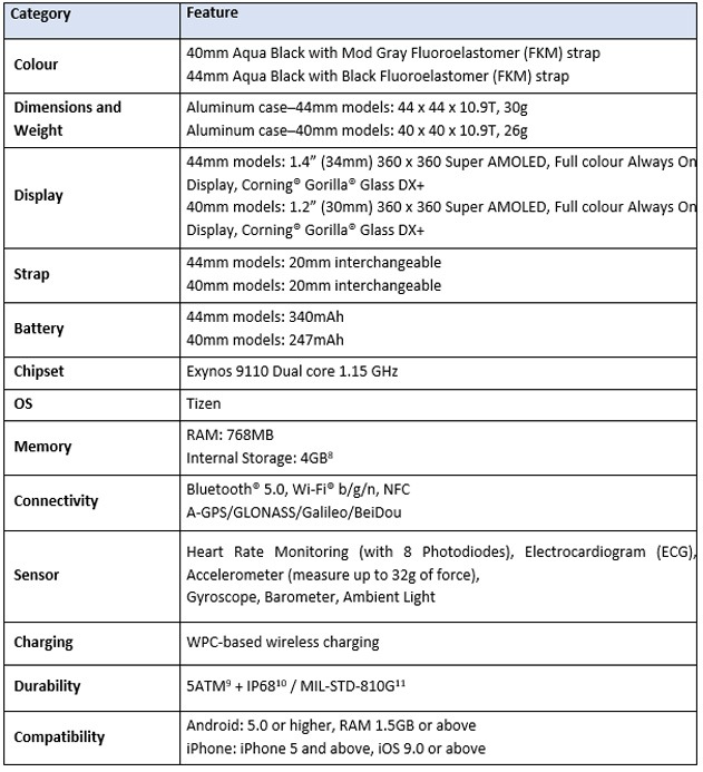 Galaxy Watch Active2 Under Armour Edition Product Specifications: