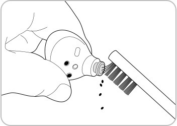 Note: Do not use anything sharp or use excessive force while removing earwax or debris. The microphone hole, speaker and the air duct may be damaged.