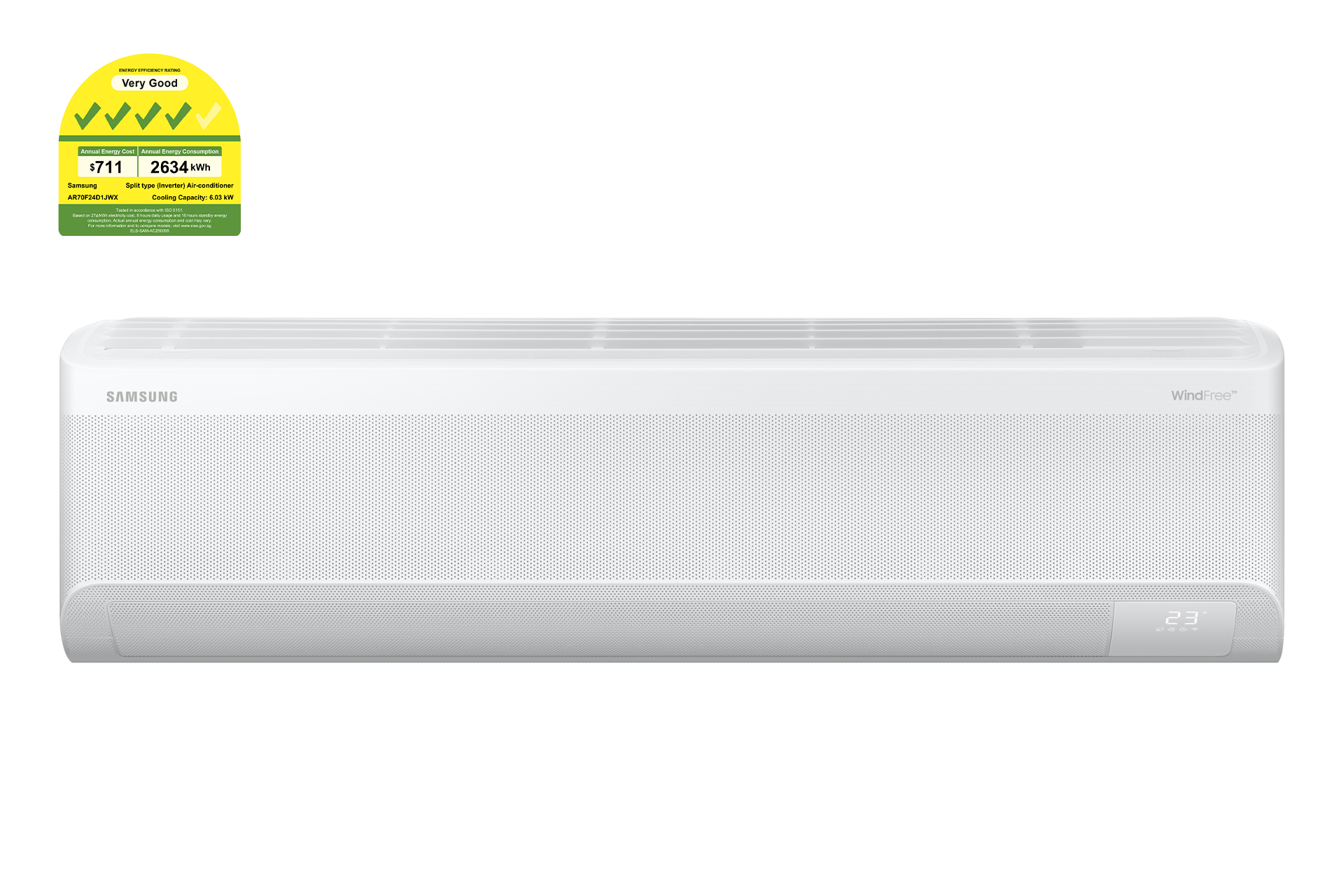 • 1. *Based on internal testing. Tested on the AR12TXCAAWKEU model compared with the Samsung conventional AQ12EASER model, measuring the time taken to reduce the room temperature from 33°C to 25°C. **Based on internal testing. Tested on the AR12TXCAAWKNEU model. WindFree™ mode generates only 23dB of noise, compared to 26dB with the Samsung conventional model. Go to feature