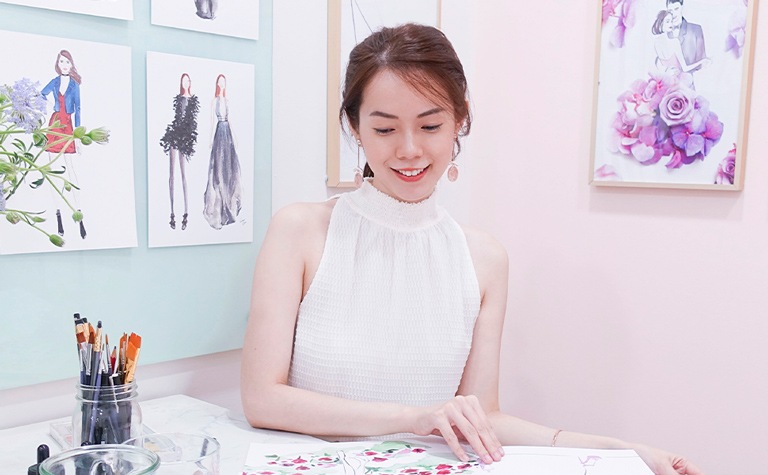 It all happened by chance: one day as I was painting, I noticed that a rose on my desk was wilting. Wanting to preserve its beauty, I decided to give a new lease of life by pasting its petals onto the illustration which I happened to be working on. It turned out really well; to my surprise, it garnered an overwhelming response on social media which blew my mind!