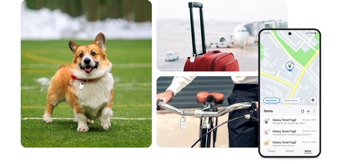 - Podprte naprave: Galaxy naprave (Galaxy mobilni telefoni, tablični računalniki, Galaxy Watch pametna ura Tizen OS 5.5 ali novejše različice ali Wear OS, Galaxy Buds+ brezžične slušalke ali novejši model, Galaxy SmartTag/SmartTag+, izbrani modeli Galaxy Book prenosnih računalnikov, S Pen Pro pisalo) in združljivi SmartTag obeski, ki jih je mogoče vključiti v aplikacijo SmartThings.