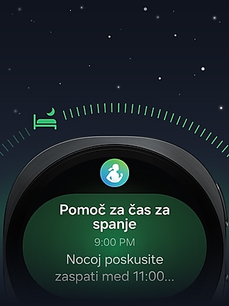 - 3. Na voljo v aplikaciji Samsung Health različice 6.24 ali novejše in mora biti združena s pametnimi telefoni Samsung Galaxy z operacijskim sistemom Android OS 11 ali novejšim. Potrebna je prijava v račun Samsung Account. Zahteva podatke o spanju za vsaj 7 dni (vključno z 1 delovnim dnem in 1 prostim dnem).
