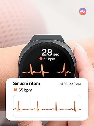Kako lahko opravim ECG test?Z uro Galaxy Watch, ki podpira aplikacijo Samsung Health Monitor, lahko opravite ECG teste in preverite morebitne znake atrijske fibrilacije. V izbranih državah ali regijah lahko prejemate opozorila, ki vas lahko obvestijo, da morate opraviti ECG test, ko med nošenjem Galaxy Watch na zapestju zaznate znake nepravilnega srčnega ritma. Funkcija ECG testa je podprta v seriji Galaxy Watch4 in novejših modelih Samsung Galaxy Watch ( z izjemo Galaxy Fit) z Wear OS 5.0 ali novejšim ter na pametnih telefonih Android (Android 12 ali novejši). Razpoložljivost je odvisna od države ali regije. Preverite na strani https://www.samsung.com/apps/samsung-health-monitor za več informacij in najnovejše posodobitve v državah s storitvijo.