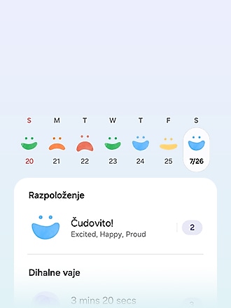 Bodite na pravi poti do popolnega dobrega počutja s Samsung Health. Spremljajte svoje zdravstvene podatke, prejemajte vpoglede s pomočjo umetne inteligence in prilagojenega svetovanja za vzpostavitev dobrih navad za bolj zdravo življenje.