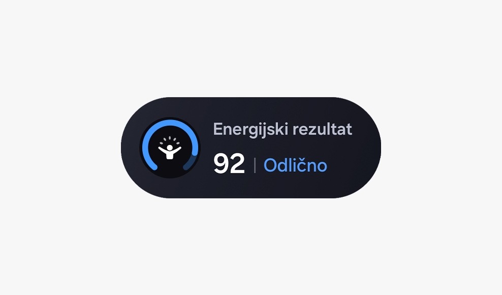 Kaj je Energy Score v Samsung Health?Energy Score je indeks, ki vam lahko pomaga prikazati vašo trenutno telesno in duševno pripravljenost z analizo včerajšnjih telesnih dejavnosti in vzorcev spanja. Spremljajte svoj Energy Score in si pomagajte razviti boljše zdravje in spalne navade, da se boste zbudili pripravljeni na nov dan.