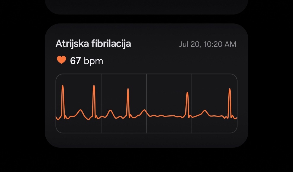 - 28. Razpoložljivost funkcije Irregular Heart Rhythm Notification (IHRN) se lahko razlikuje glede na državo/regijo. Zaradi omejitev posameznih držav pri pridobivanju odobritve/registracije kot programske opreme kot medicinskega pripomočka (SaMD) deluje le na urah in pametnih telefonih, kupljenih v državah, kjer je storitev na voljo (vendar je storitev lahko omejena, ko uporabniki potujejo v države, kjer storitev ni na voljo). Ni namenjeno obveščanju o vsaki epizodi nepravilnega ritma, ki kaže na AFib, odsotnost obvestila pa ne pomeni, da bolezen ni prisotna. Ni namenjeno uporabnikom z drugimi znanimi aritmijami ali uporabnikom, mlajšim od 22 let. Uporabniki ne smejo razlagati rezultatov ali klinično ukrepati na podlagi napovedi brez posvetovanja z usposobljenim zdravstvenim delavcem.