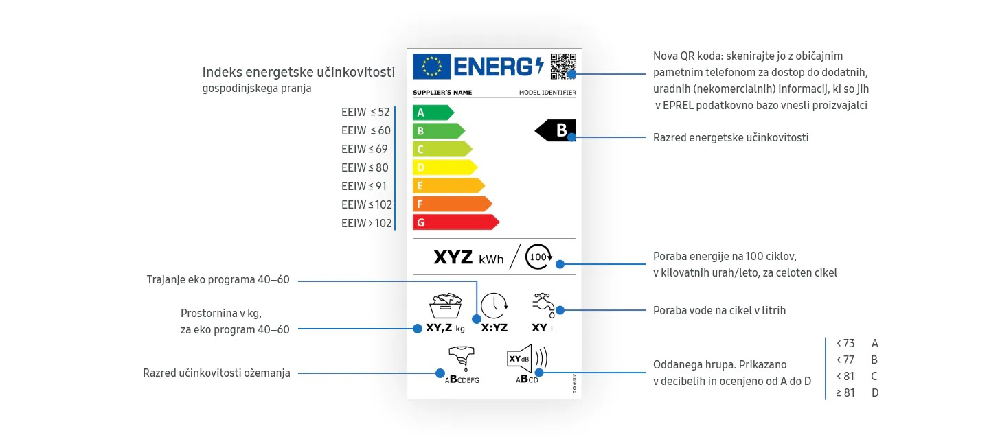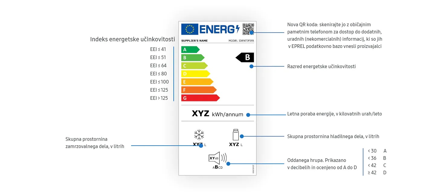 Nov element teh nalepk je QR koda, ki potrošnikom nudi dodatne, uradne (nekomercialne) informacije, če kodo skenirajo s pametnim telefonom. Ti podatki so na voljo vsem evropskim državljanom in so v EPREL EU podatkovni bazi.