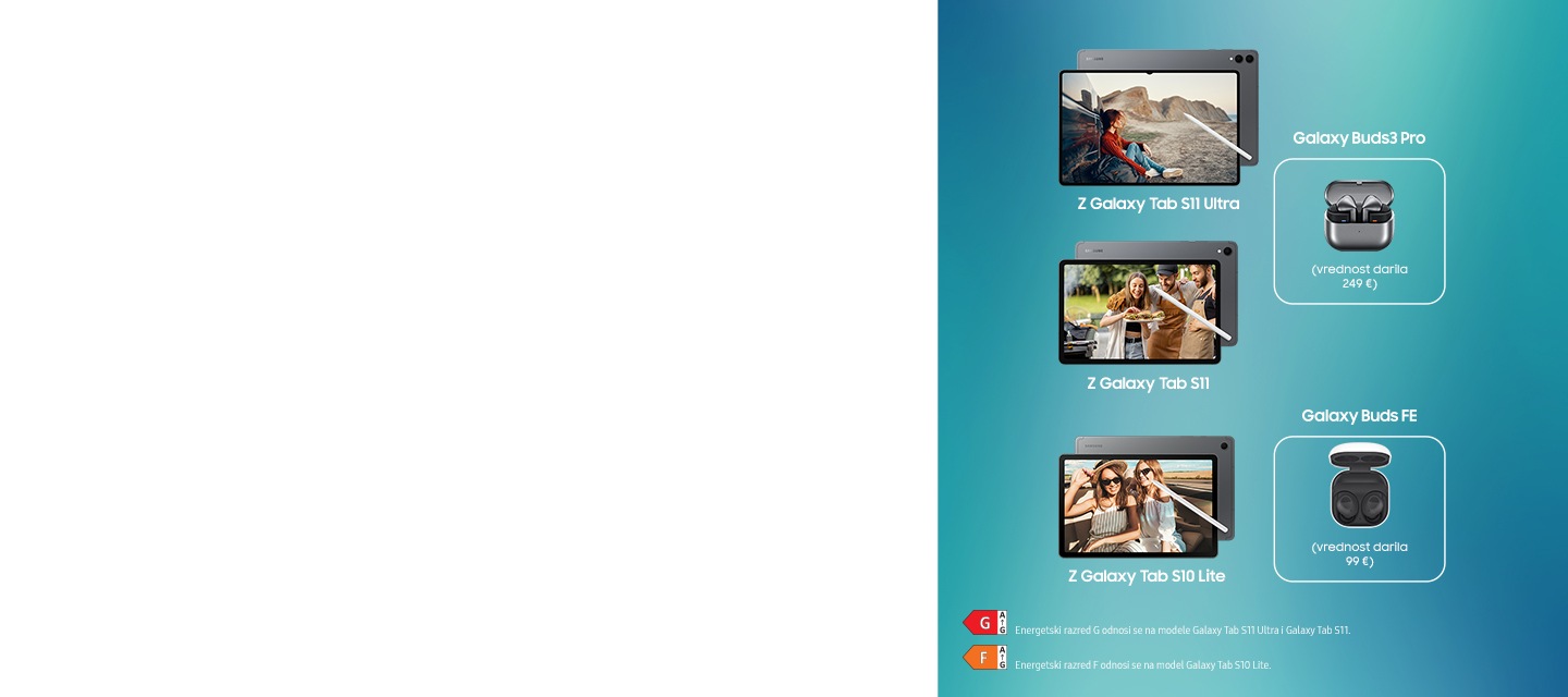1. Kupi Galaxy Tab S11 Ultra ali Galaxy Tab S11 ali Galaxy Tab S10 Lite v obdobju od 5. 9. do 28. 9. 2025 (ali do razprodaje zalog).