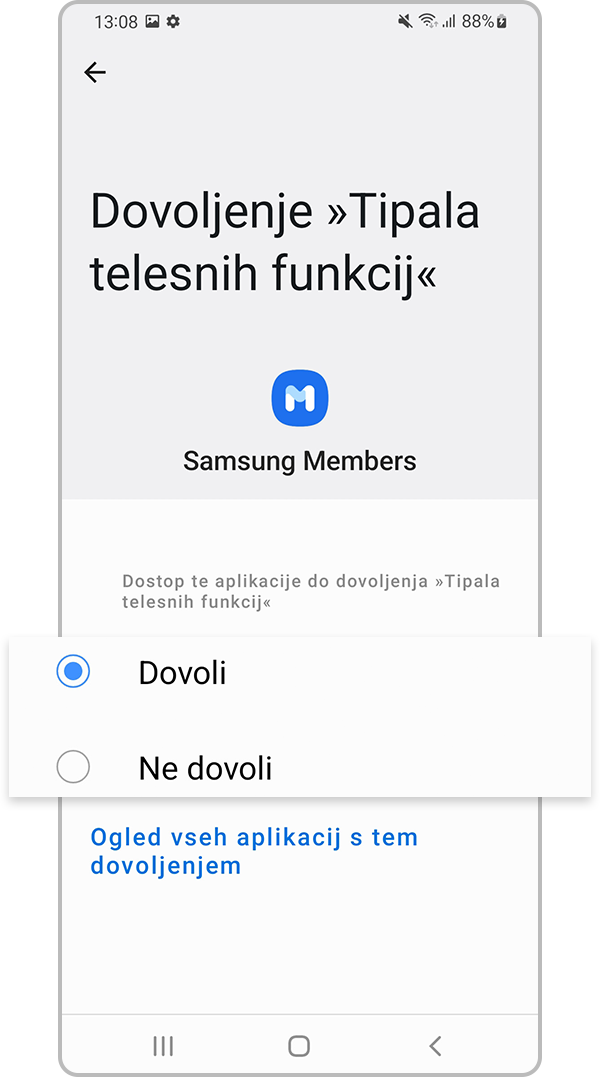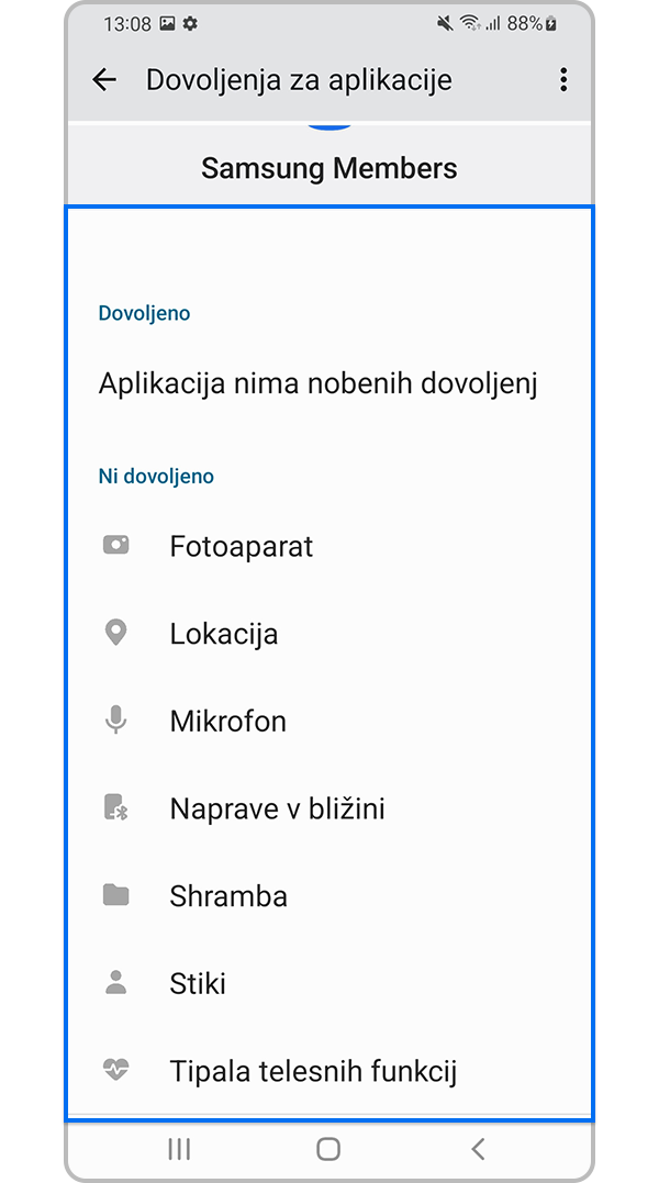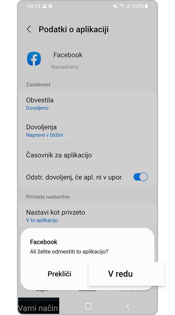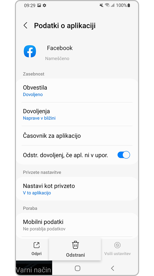 Po namestitvi aplikacije se lahko odločite, katerim aplikacijam boste dovolili dostop do naprave. Zlonamerna aplikacija lahko razkrije informacije iz vaše naprave, zato bodite previdni pri dodeljevanju dovoljenj. Če dovolite dostop do naprave, potem pa aplikacije nekaj časa ne uporabljate, se njena dovoljenja samodejno ponastavijo, ob naslednji uporabi pa boste morali znova dodeliti dovoljenja.