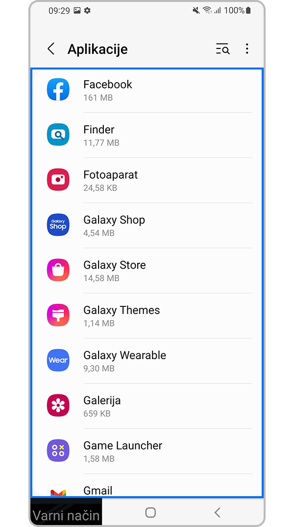Sledite spodnjim korakom, da odstranite aplikacijo v Varni način.