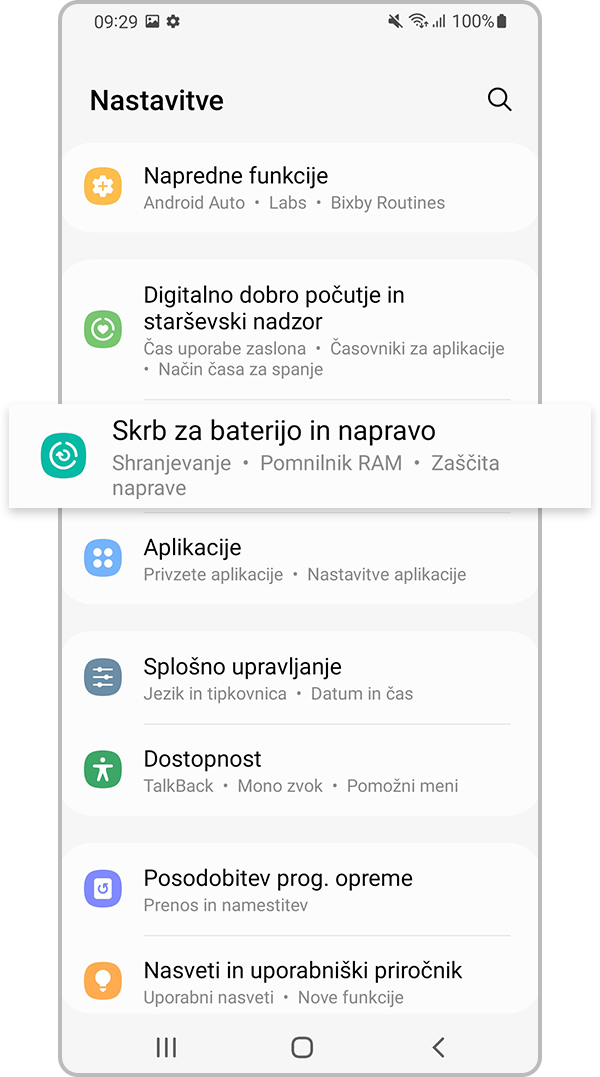 Opomba: Posnetki zaslona in meniji naprav se lahko razlikujejo glede na model naprave in različico programske opreme.