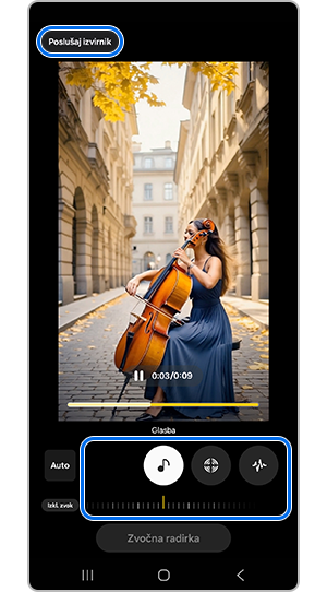 Funkcija Zvočna radirka vam omogoča prilagajanje ali odstranjevanje motečih zvokov v ozadju iz vaših videoposnetkov, kot so veter, pogovor množice ali splošni okoljski zvok, pri tem pa ohranja ključne zvoke, kot sta govor ali glasba. S to funkcijo lahko ustvarite čistejše in bolj osredotočene videoposnetke neposredno na svojih napravah Galaxy.