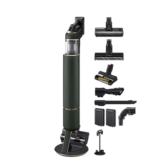 * Prodaja se ločeno. ** Naveden čas delovanja se nanaša na "mokri" način delovanja, ko je nameščena vrtljiva pršilna krtača. *** Na podlagi primerjave BESPOKE Jet z običajno rotacijsko krtačo: teža krtače = 1,4 kg (s polno posodo za vodo) v primerjavi z 1,02 kg. Velikost substrata = 170π v primerjavi s 150π. **** Na podlagi testiranja Korea Analysis Test Researcher v skladu z referenčnim standardom AATCC-100. Deaktivira 99,9 % bakterij Staphylococcus aureus in Escherichia coli. Ta funkcija ni podprta v ZDA in Kanadi, rezultati pa se lahko razlikujejo glede na dejanske pogoje uporabe.