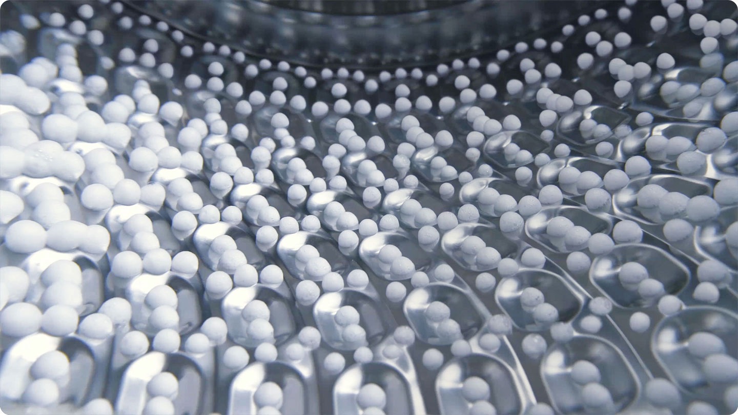 - Na osnovi poročila o laboratorijskem preizkusu učinkovitosti v podjetju Springboard Engineering na trakovih EMPA; primerjava med običajno raztopino detergenta in tehnologijo mehurčkov brez mehanskega delovanja, preizkušeno na tkaninah iz poliestra. Posamezni rezultati se lahko razlikujejo.