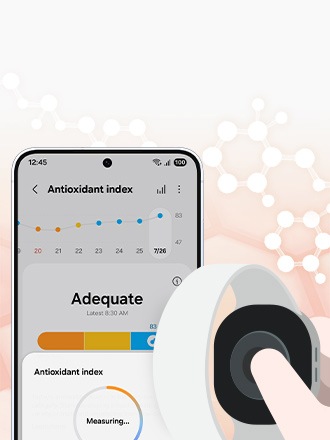 - 13. Funkcia Antioxidačný index je k dispozícii na telefónoch Android (Android 10 alebo novší) a vyžaduje aplikáciu Samsung Health (v6.30.2 alebo novšiu). Vyžaduje sa prihlásenie sa do účtu Samsung Account.