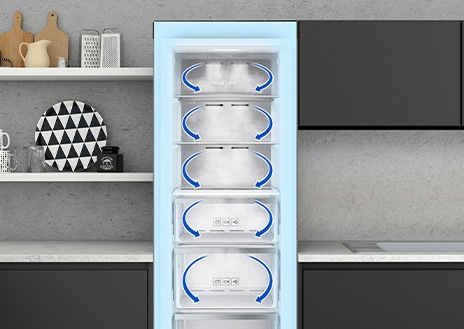 1. วางตู้เย็น Bespoke เป็นลักษณะการวางแบบลอยตัว (Freestanding) เคลื่อนย้ายได้สะดวก สามารถเปลี่ยนตำแหน่งหรือเปลี่ยนรุ่นได้ในภายหลัง