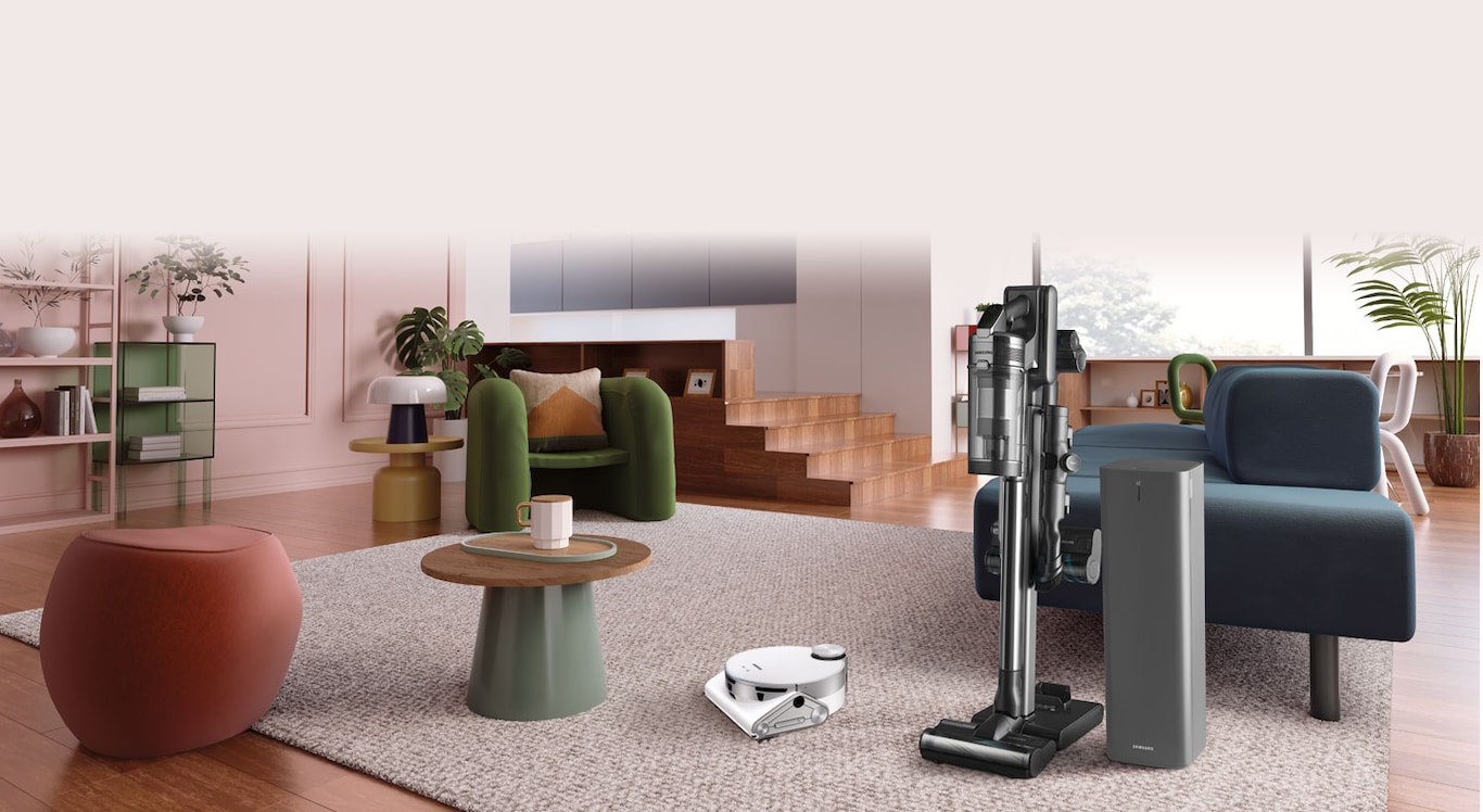 * อิงตามการทดสอบภายในด้วยพื้นที่ที่มีการจัดวางเฟอร์นิเจอร์คล้ายกับบ้านของจริง โดยเปรียบเทียบกับ Samsung VR7000M รุ่นที่มีอยู่แล้ว ** จำเป็นต้องติดตั้งแอปพลิเคชัน SmartThings และใช้งานได้กับอุปกรณ์ Android และ iOS จำเป็นต้องใช้การเชื่อมต่อ Wi-Fi และใช้ Samsung Account *** ระบบควบคุมพลังงานอัจฉริยะมีให้ใช้งานในโหมดอัจฉริยะ (Smart Mode) เท่านั้น ****อิงตามการทดสอบภายในด้วยโหมดการทำงานสูงสุดซึ่งเป็นไปตามมาตรฐาน IEC62885-2 Cl. 5.11 ผลลัพธ์ที่ได้อาจแตกต่างกันไปตามสภาพแวดล้อมจริงของบ้าน