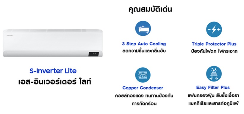 เนื่องจากในปี 2022 นี้ SAMSUNG ได้มีการพัฒนารูปแบบและผลิตภัณฑ์เครื่องปรับอากาศชนิดติดผนัง (Wall Type) รุ่นใหม่ ปี 2022 เพื่อให้ตอบโจทย์การใช้งานของลูกค้าที่หลากหลายในปัจจุบัน ซึ่งมีการเพิ่มเทคโนโลยีและฟังก์ชั่นต่างๆเพื่อการใช้งานที่สะดวกและง่ายขึ้น และรูปแบบผลิตภัณฑ์มีการดีไซน์ที่สวยงามและทันสมัย ซึ่งรุ่นใหม่ ปี 2022 ทั้งหมด 4 รุ่น ดังนี้