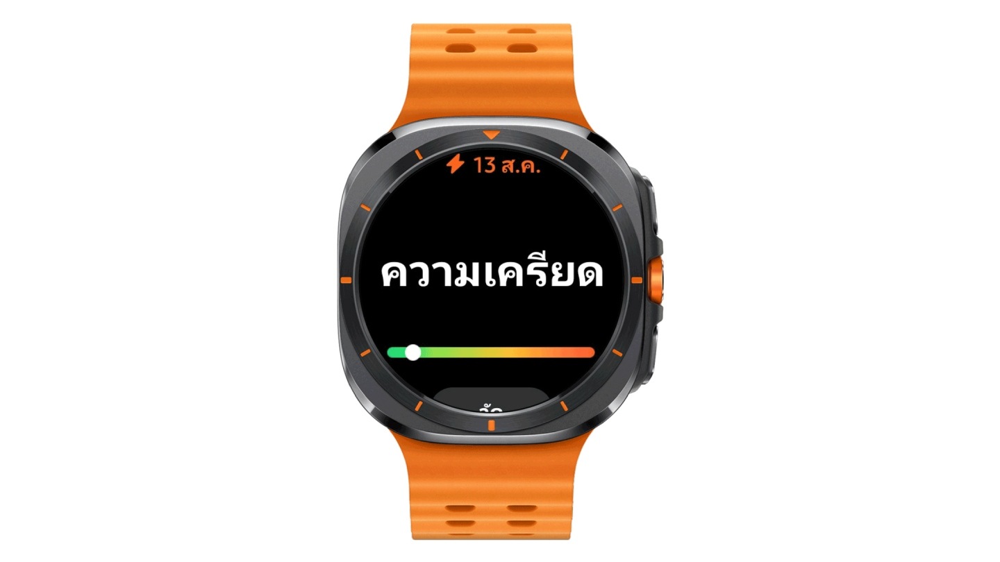 “โค้ช AI ส่วนตัว” หลังจากเซตเป้าหมายให้เหมาะกับตัวเองแล้ว Galaxy Watch Ultra มาพร้อม Galaxy AI ใหม่ กับฟีเจอร์ Energy Score (คะแนนพลังงาน) ซึ่งจะบอกภาพรวมของกิจกรรมที่เราทำเมื่อวาน ไม่ว่าจะเป็น การนอน, การเคลื่อนไหว และทำกิจกรรมต่างๆ ทำให้เรารู้ว่าควรจะใช้ร่างกายยังไงไม่ให้หนักเกินไป หากใช้ร่างกายเบาหรือหนักไป ก็จะมีการเตือนบอกให้รู้ว่าควรลดหรือเพิ่ม เพื่อช่วยให้เรารู้ว่าร่างกายตอนนี้เป็นอย่างไรบ้างจะได้จัดกิจกรรมในวันถัดไปได้อย่างลงตัว