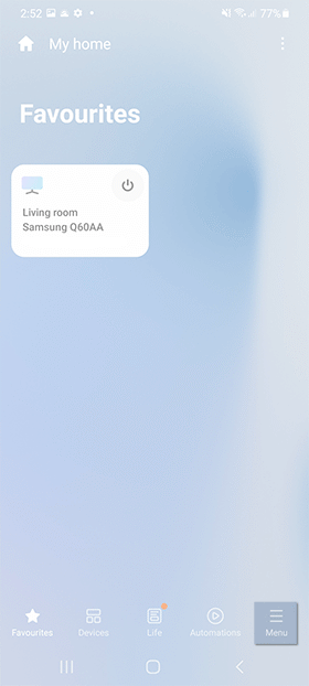 1. เปิดแอป SmartThings แล้วเลือก Menu