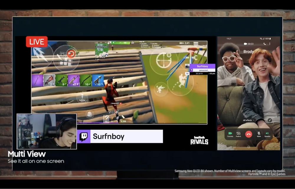 ด้วยฟีเจอร์ Multi View ในทีวีจาก Samsung คุณสามารถเล่นเกมพร้อมมีเพี่อนอยู่ข้างๆ ได้ทุกเวลาที่ต้องการ Multi View ให้คุณเล่นเกมได้บนจอใหญ่ พร้อมกับวิดีโอคอลหาเพื่อนได้ในเวลาเดียวกัน
