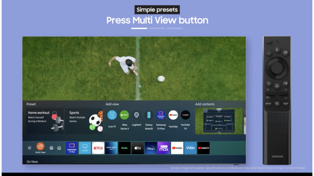 ถ้าพร้อมแล้ว มาดูวิธีการเปิดใช้งาน Multi View บนทีวี Samsung ของคุณกัน เพื่อให้คุณสามารถดูสื่ออื่นๆ จากหลายช่องทาง อย่างเช่น กล่องรับสัญญาณ STB, TV Tuner, แอปต่างๆ, เครื่องเล่นบลูเรย์ หรือเครื่องเกมคอนโซลจากทางด้านซ้ายของจอ และดูเนื้อหาที่ส่งจากโทรศัพท์ได้จากทางด้านขวา ซึ่งทำได้เชื่อมต่ออุปกรณ์ของคุณ พร้อมตั้งค่าขนาดหน้าจอและระดับเสียงตามต้องการ