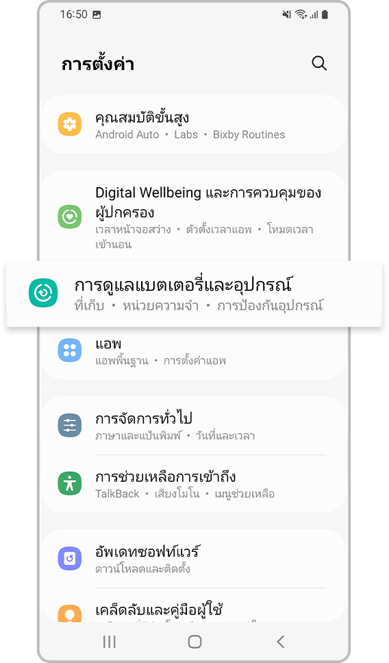 หมายเหตุ: ภาพหน้าจออุปกรณ์และเมนูอาจแตกต่างกันไป ขึ้นอยู่กับรุ่นของอุปกรณ์และเวอร์ชั่นซอฟต์แวร์