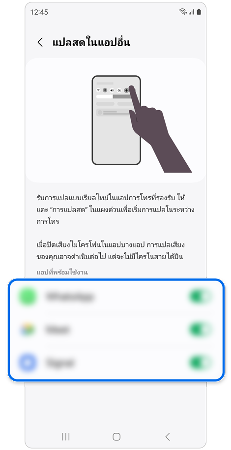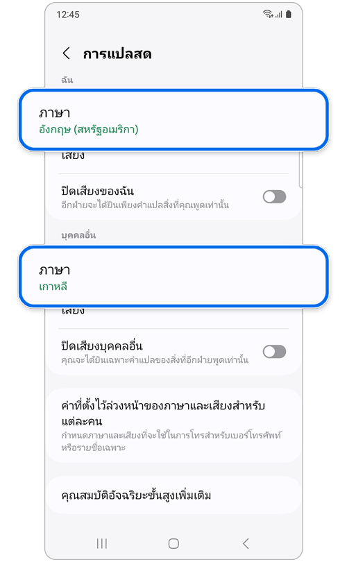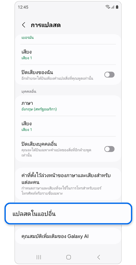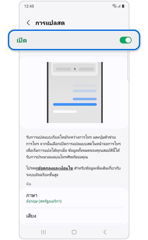 ก่อนที่จะใช้การแปลสด คุณต้องเปิดฟีเจอร์นี้ในการตั้งค่าของอุปกรณ์ก่อน คำแนะนำต่อไปนี้จะช่วยแนะนำคุณตลอดกระบวนการ
