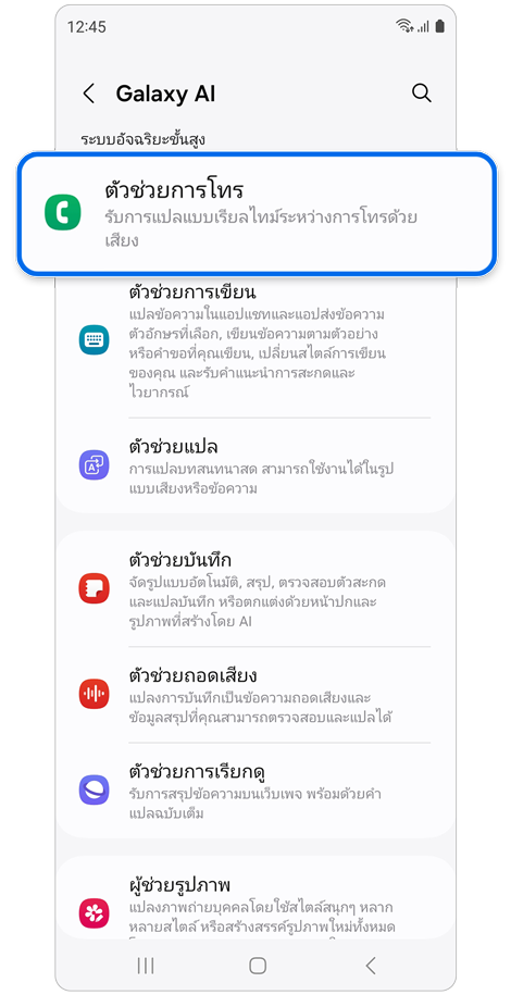 วิธีใช้การแปลสดสำหรับการโทรด้วย Galaxy AI