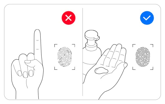 เซ็นเซอร์ลายนิ้วมือในโทรศัพท์ของคุณอาจไม่สามารถจดจำลายนิ้วมือได้อย่างเหมาะสม เนื่องจากปัจจัยต่างๆ ที่เกี่ยวข้องกับลายนิ้วมือหรือสภาพแวดล้อม กรุณาลองอีกครั้งหลังจากที่ตรวจสอบว่านิ้วมือของคุณไม่แห้งหรือเปียกจนเกินไป หรือนิ้วมือวางอยู่บนพื้นที่เซ็นเซอร์อย่างถูกต้อง