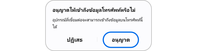 เมื่อเชื่อมต่อโทรศัพท์กับพีซี จะมีข้อความขออนุญาตเข้าถึงข้อมูลโทรศัพท์ปรากฏขึ้น หากไม่แตะ "อนุญาต" พีซีจะไม่สามารถแสดงโฟลเดอร์ของโทรศัพท์ได้