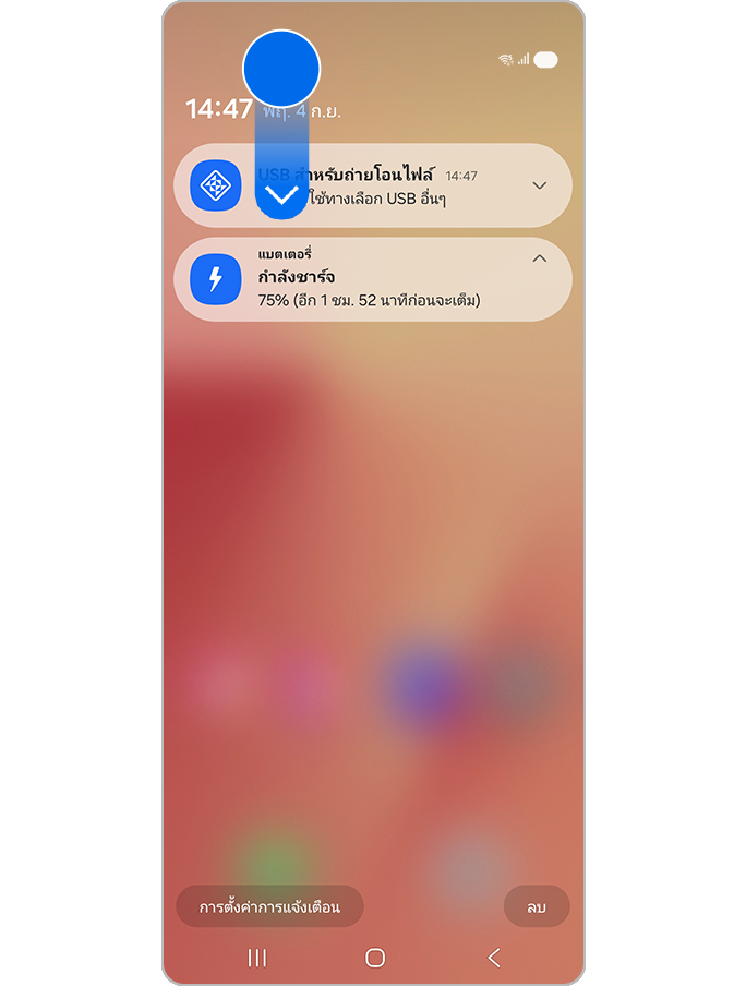 หากโทรศัพท์ของคุณเชื่อมต่อแล้ว แต่ยังตรวจไม่พบ ปัญหาอาจเกิดจากการตั้งค่าการใช้งาน USB ในปัจจุบัน โดยในบางโหมด เช่น การชาร์จอย่างเดียว พีซีอาจแสดงเฉพาะชื่ออุปกรณ์ หรือไม่แสดงโฟลเดอร์ใดๆ เลย หากต้องการถ่ายโอนไฟล์ ให้เปลี่ยนโหมดการใช้งาน USB เป็น การถ่ายโอนไฟล์ เพื่อให้สามารถเข้าถึงพื้นที่เก็บข้อมูลภายในจากพีซีได้