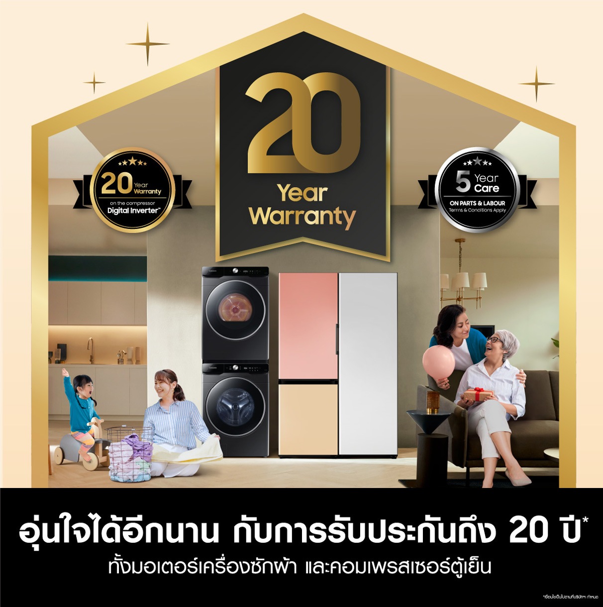 เงื่อนไขการขยายการรับประกันเฉพาะอุปกรณ์มอเตอร์เครื่องซักผ้าและคอมเพรสเซอร์ตู้เย็น (เพิ่มจาก 10ปี เป็น 20 ปี)