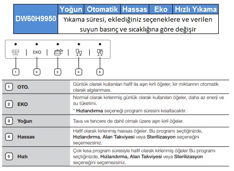 Samsung Bulaşık Makinesi Yıkama Süreleri ve Programları