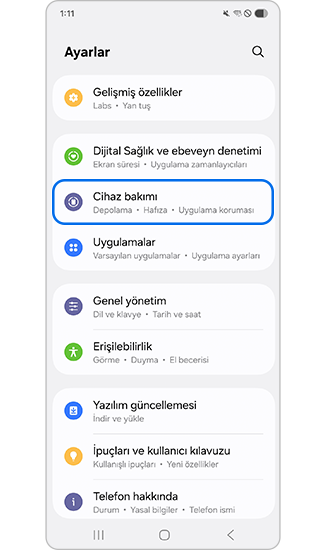 - Bakım modundan ayrıca şuraya giderek de çıkabilirsiniz: Ayarlar > Cihaz bakımı > Bakım modu.