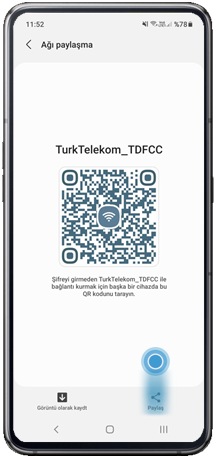 Bağlı olunan Wi-Fi ağını QR kod üzerinden paylaşmak için,