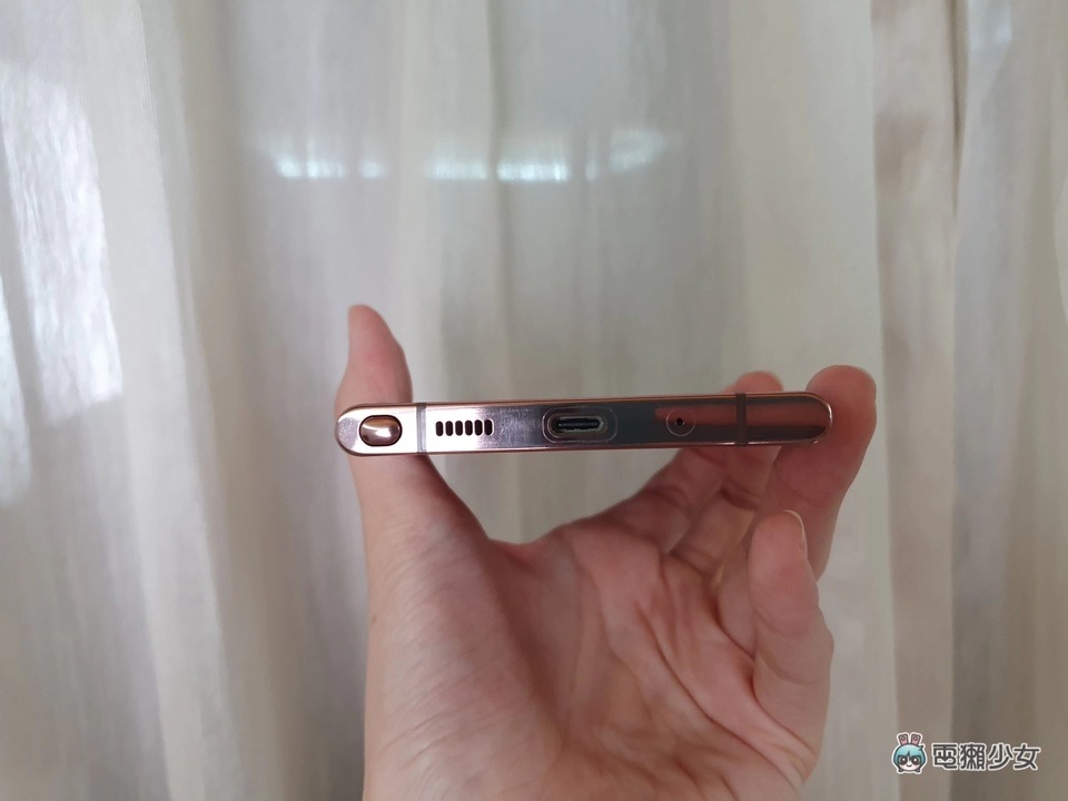 S Pen 也同樣是霧金色,前代在機身右側的 S Pen,這次移到了左側。方正機身的手機搭上同色系的筆,俐落又時尚的風格完全打中我!