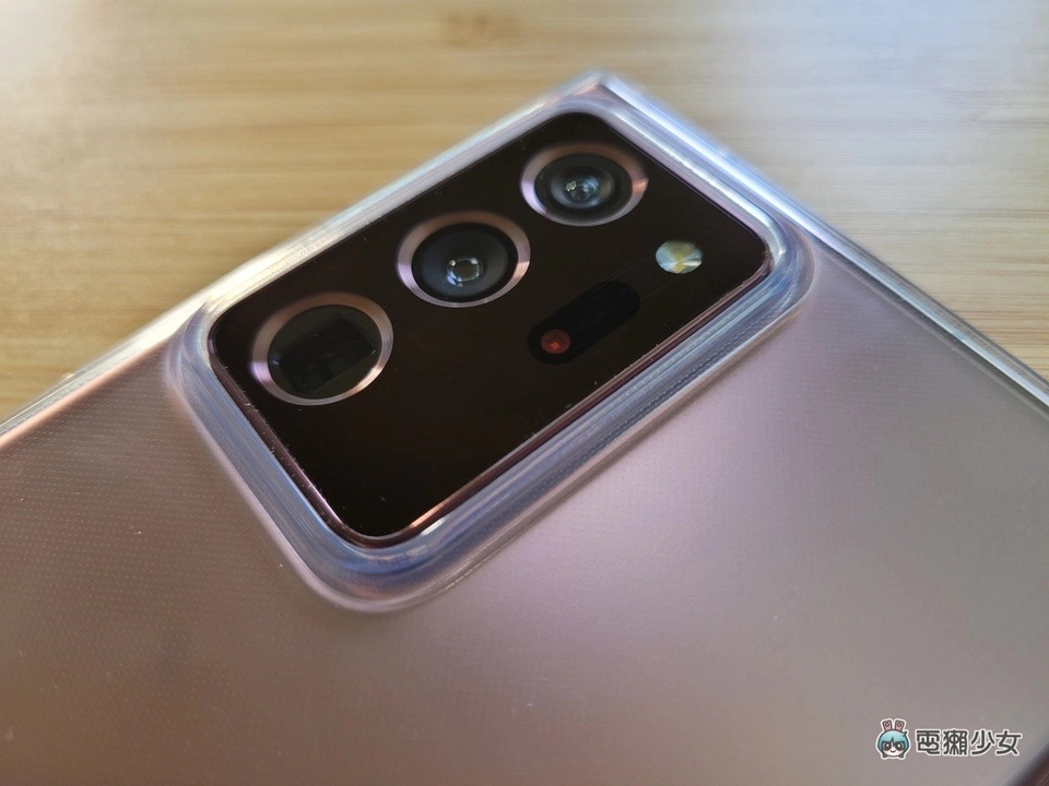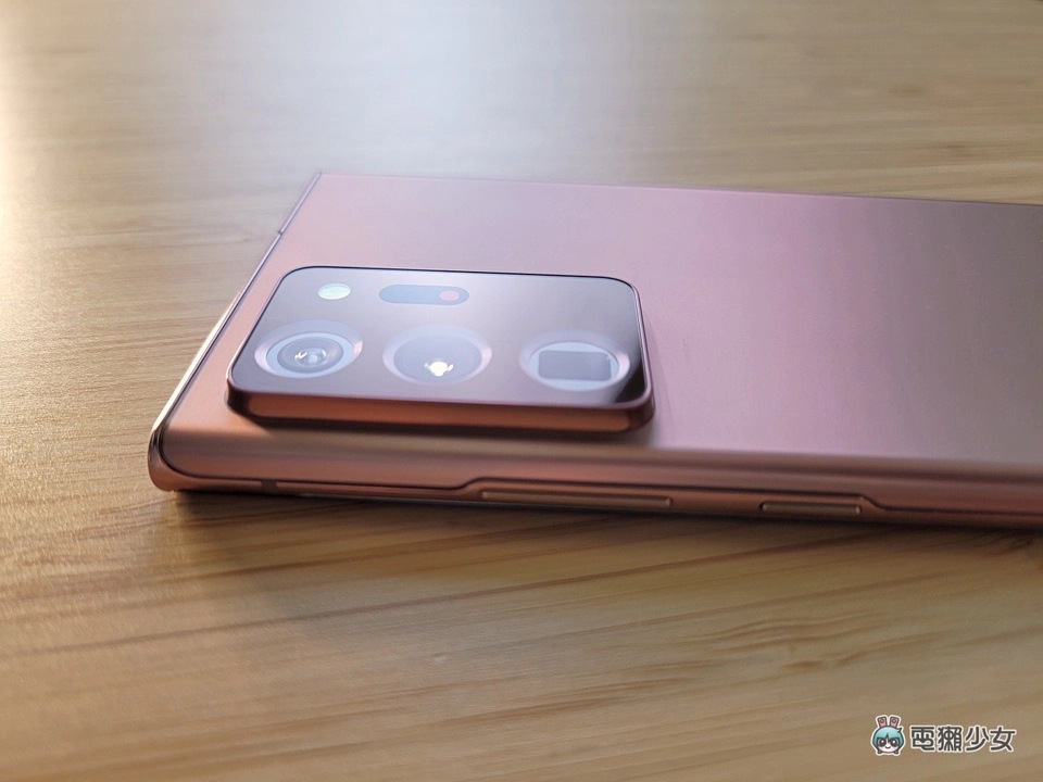 Galaxy Note20 Ultra 5G 採用和 S20 Ultra 相同的一億畫素大感光元件,但是在鏡頭造型的設計上,我覺得 Galaxy Note20 Ultra 5G 看起來比 S20 Ultra 5G 又更優雅漂亮了一些~但因為要容下大感光元件,鏡頭比較凸在所難免,在使用時要好好保護