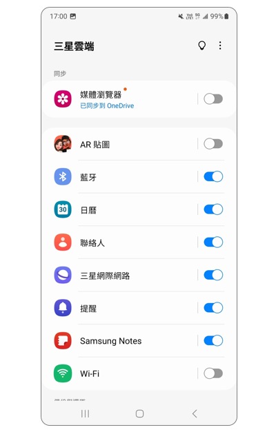 三星雲端支援同步與三星帳號相關的資訊,以及備份/還原儲存在裝置中的資料。