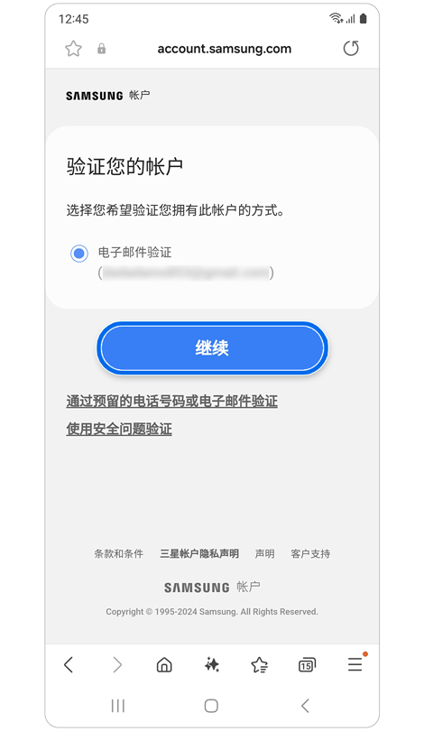 * 若要使用恢復電子郵件重設密碼,您必須已在三星帳號設定中註冊恢復電子郵件。