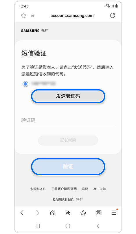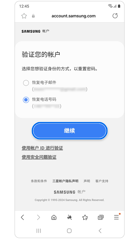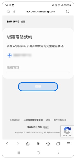 * 若要使用輔助電話號碼重設密碼,您必須已在三星帳號設定中註冊輔助電話號碼。