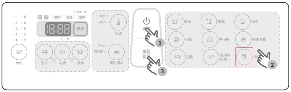 洗衣機面板上的桶槽燈(槽洗淨燈號)亮起時代表什麼意思?