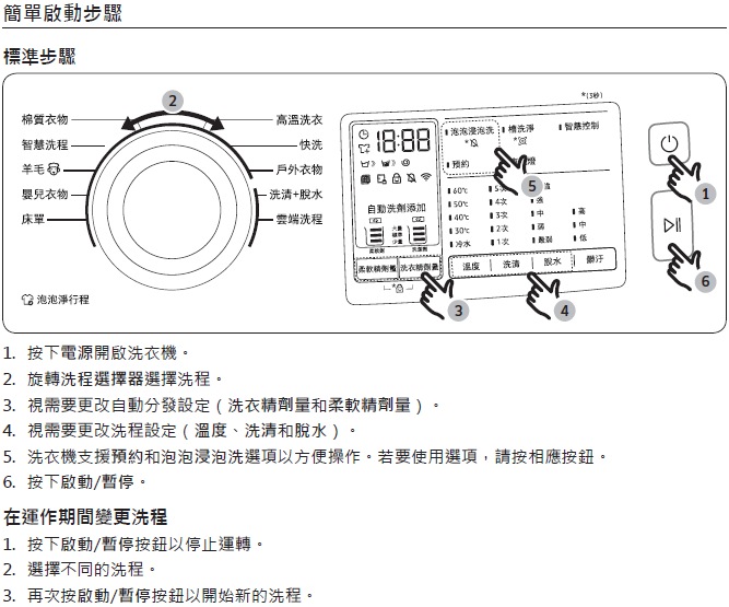 滾筒洗衣機 : WF19N簡單啟動步驟