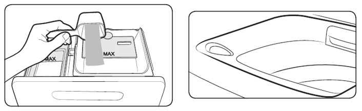 - 僅將柔軟劑分隔盒用於液體柔軟劑。