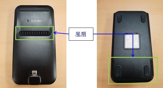 若您使用的應用程式需要消耗大量電力或當您長時間使用裝置時,手機就會升溫。為避免過熱,一旦裝置達到特定溫度時,DeX Pad 內的風扇便會開始運轉。待溫度稍降時,DeX Pad 內的風扇就會自動停止運轉。故其聲響是來自內建風扇的運轉,並非裝置異常,請您放心。