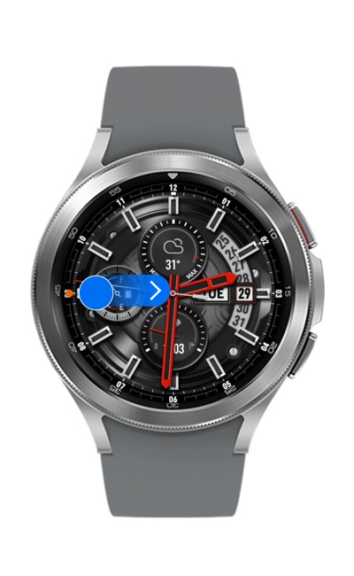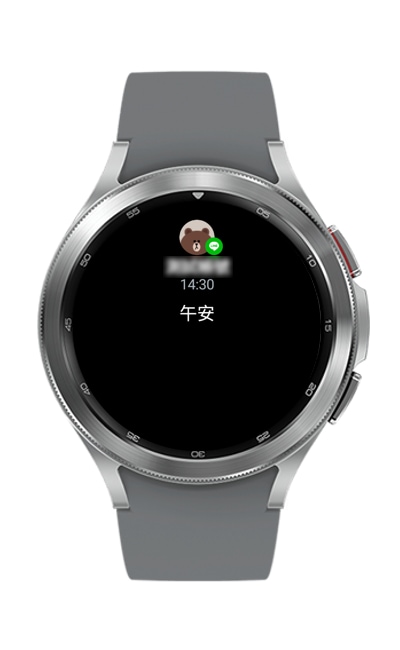 Galaxy Watch4 在收到通知後,將螢幕由左向右滑,便能查看通知。